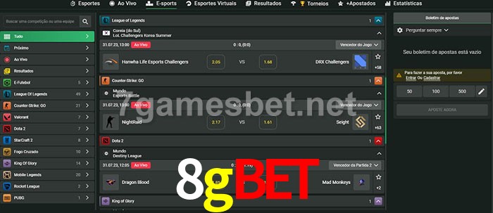 O 8gbet oferece uma grande seleção de opções de apostas em e-sports com probabilidades competitivas
